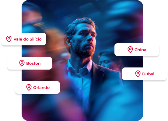 Vivências práticas em ecossistemas de inovação no Vale do Silício, Boston, Orlando, New York, China e Dubai.